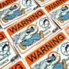 Mome Warning vinyl stickers designed by graffiti artist Mome! The stickers are made of glossy vinyl material with an UV resistant layer so they last longer and feature a break line on the back for easy peeling.
